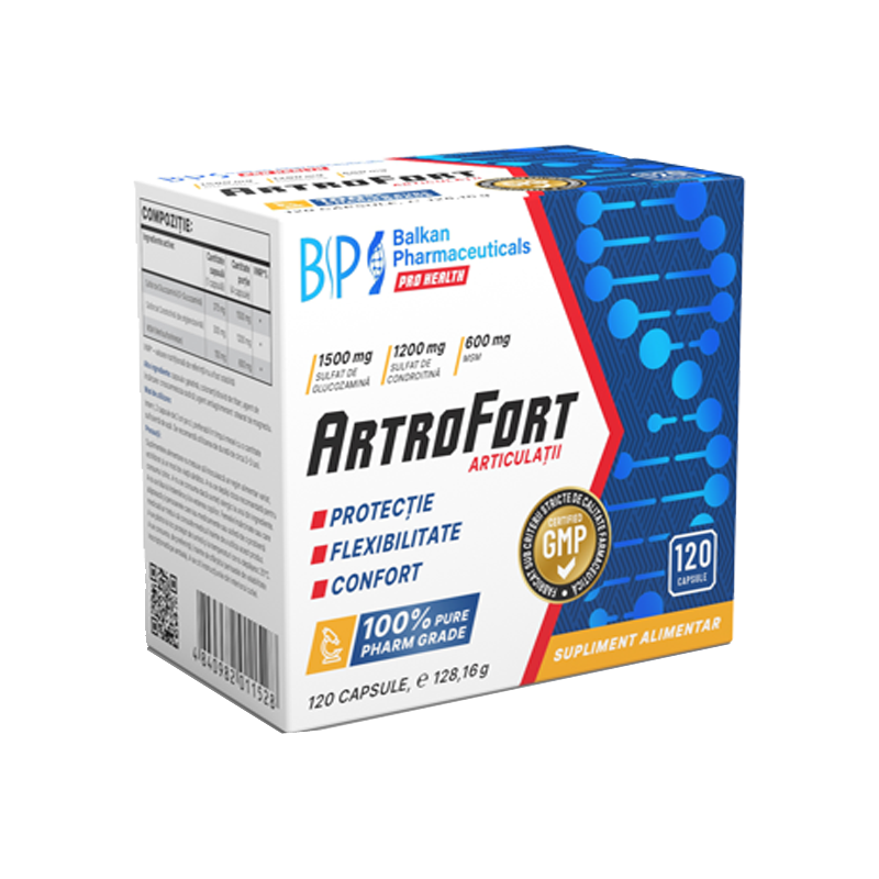 Balkan Pharmaceuticals Artrofort .Χρήσιμη φόρμουλα για την βελτίωση του πόνου στις αρθρώσεις, μείωση στις φλεγμονές και αλλεργικές αντιδράσεις, τόνωση του ανοσοποιητικού συστήματος, διατήρηση των κατάλληλων λειτουργιών του δέρματος και επιτάχυνση της αποκατάστασης μετά από σωματική άσκηση (σωματική προσπάθεια).