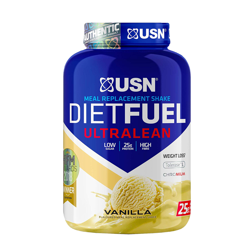 Το USN DIET FUEL ULTRA LEAN είναι ένα εξειδικευμένο προϊόν για τη μείωση του βάρους και του σωματικού λίπους και τη διατήρηση ενός γραμμωμένου μυϊκού ιστού. Έχει χαμηλό γλυκαιμικό δείκτη και λίγες θερμίδες και είναι ένα πολύ θρεπτικό γεύμα για οποιαδήποτε στιγμή της ημέρας. Προσφέρει όλα τα σημαντικά θρεπτικά συστατικά σε μια ικανοποιητική αναλογία για μείωση του λίπους. Η φόρμουλα USN Lean System περιλαμβάνει N-ακετυλο-L-καρνιτίνη, HCA (Hydroxycitricacid-Υδροξυκιτρικό οξύ) και ασβέστιο, συστατικά τα οποία έχουν δείξει ότι προωθούν τη μείωση του βάρους και την καύση του λίπους μέσω πολλαπλών αποτελεσματικών μηχανισμών. Επιπλέον έχει υψηλή περιεκτικότητα σε ίνες οι οποίες υποστηρίζουν το αίσθημα του κορεσμού. Αυτή η διαδικασία υποστηρίζεται επίσης και από τα 25g πρωτεΐνης υψηλής βιολογικής αξίας από διάφορες πηγές η οποία μέσω της δράσης της ορμόνης (PYY) προκαλεί τη φυσική απώλεια βάρους. Επιπλέον η υψηλής ποιότητας πρωτεΐνη προωθεί την πρωτεϊνοσύνθεση και ρυθμίζει τα επίπεδα σακχάρων στο αίμα, μειώνοντας τη βουλιμιά ενώ βελτιώνει την καλή λειτουργεία και τόνωση του οργανισμού.